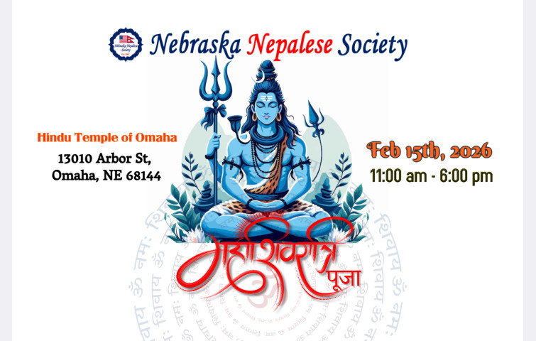 यहि फेब्रुबरी १५, २०२६ आईतबारका दिन नेब्रास्का नेप्लिज सोसाईटीको आयोजनामा सम्पन्न हुन गइरहेको शिवरात्री पर्ब बिशेष कार्यक्रममा यहाँहरु सबैलाई हार्दिक निमन्त्रणा गर्दछौं ।
